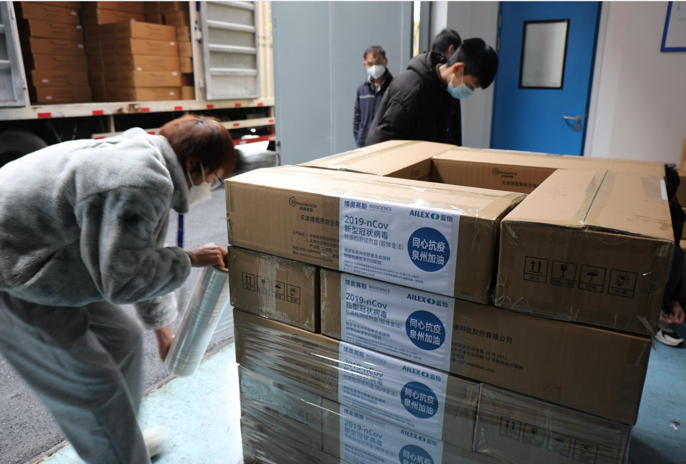 新年伊始,藍怡為了應對疫情的沖擊,專門成立了新產品事業部,在李輝總裁的統一指揮下,組織抗疫物資,日夜奮戰,為防控疫情提供有力的武器。同時,藍怡人本著“為人類健康活力而奉獻”的企業精神,向上海莘莊工業區、福建省泉州慈善總會等捐贈了大量的新冠抗原檢測試劑盒,充分彰顯了藍怡人不忘初心、奉獻的情懷。